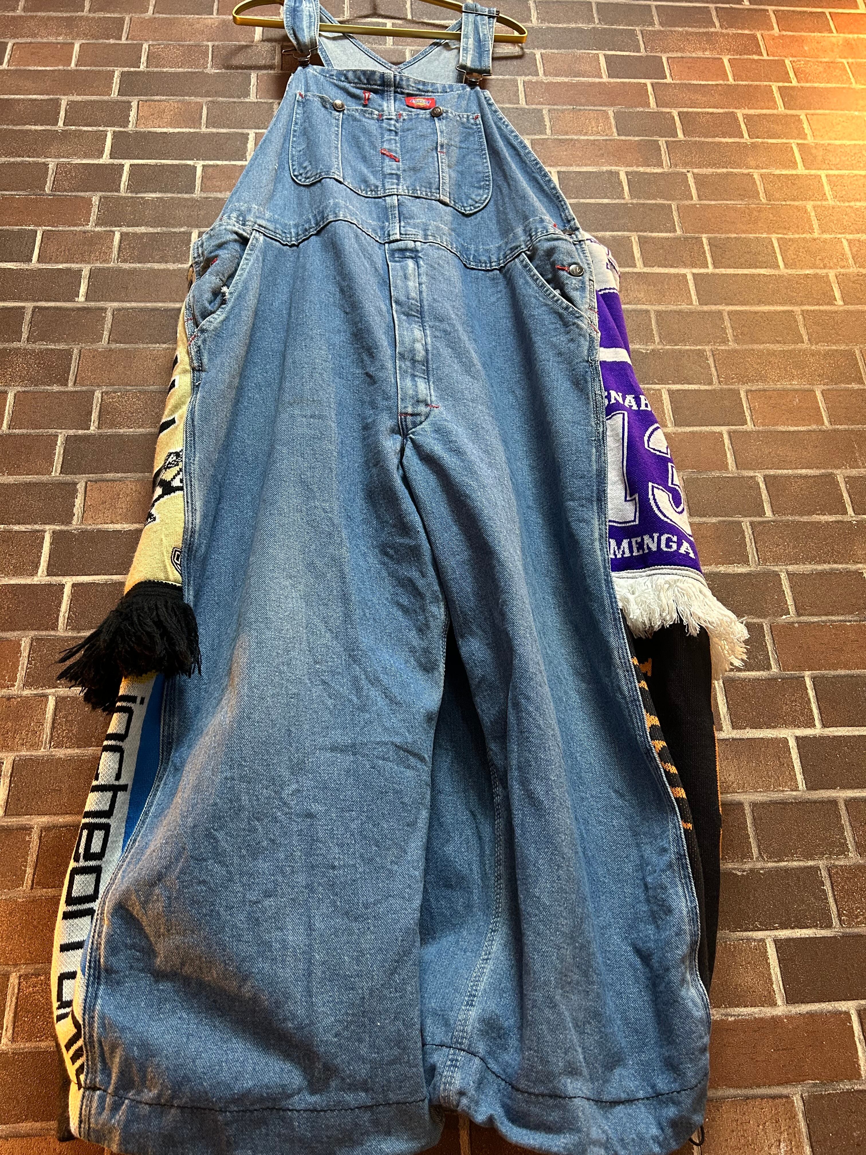 海外の古着を使用して制作したリメイクのドッキングオーバーオールです。
