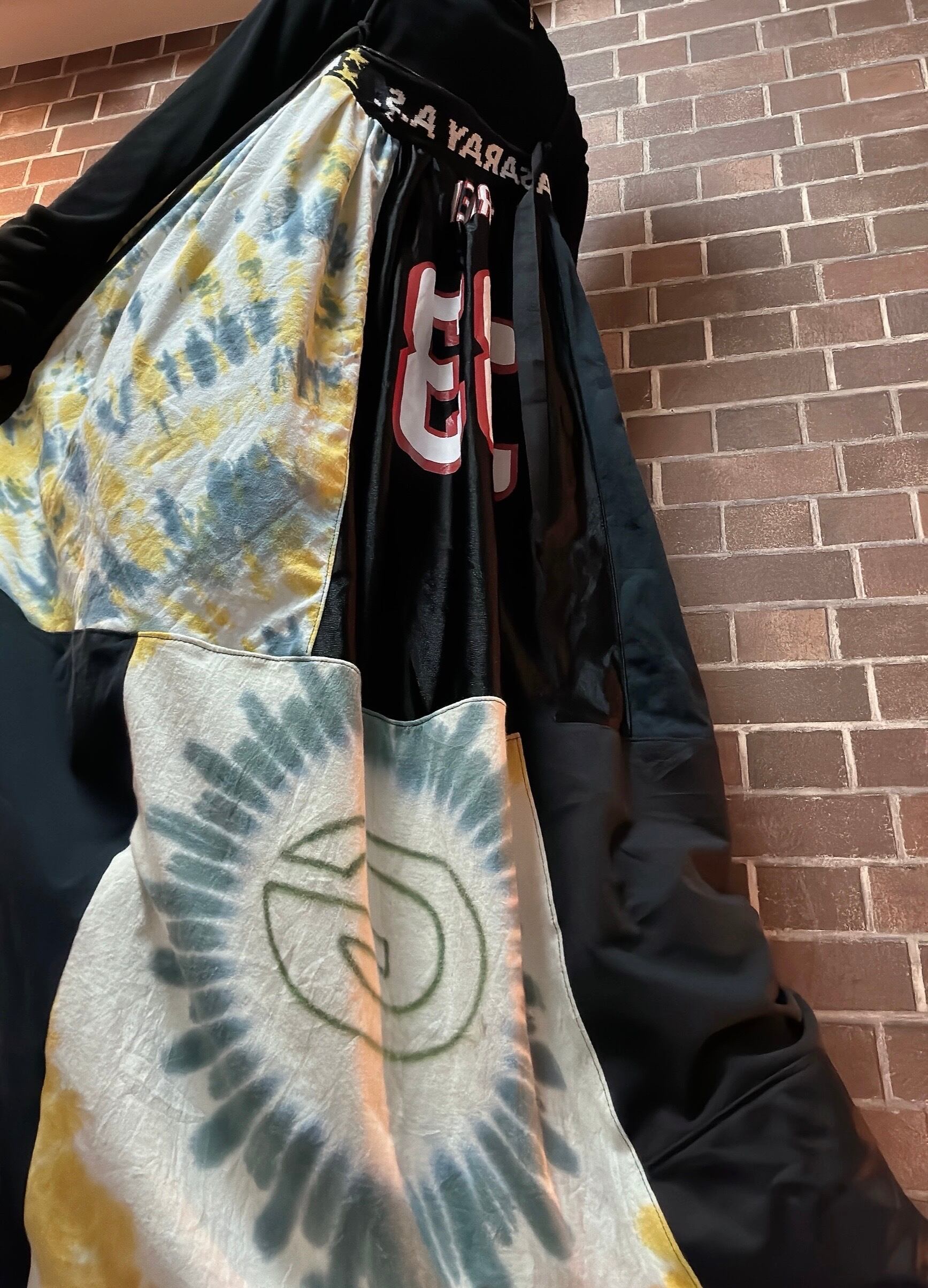 海外古着Tシャツやニットを使用して制作したリメイクのパッチワークワンピースです⭐︎