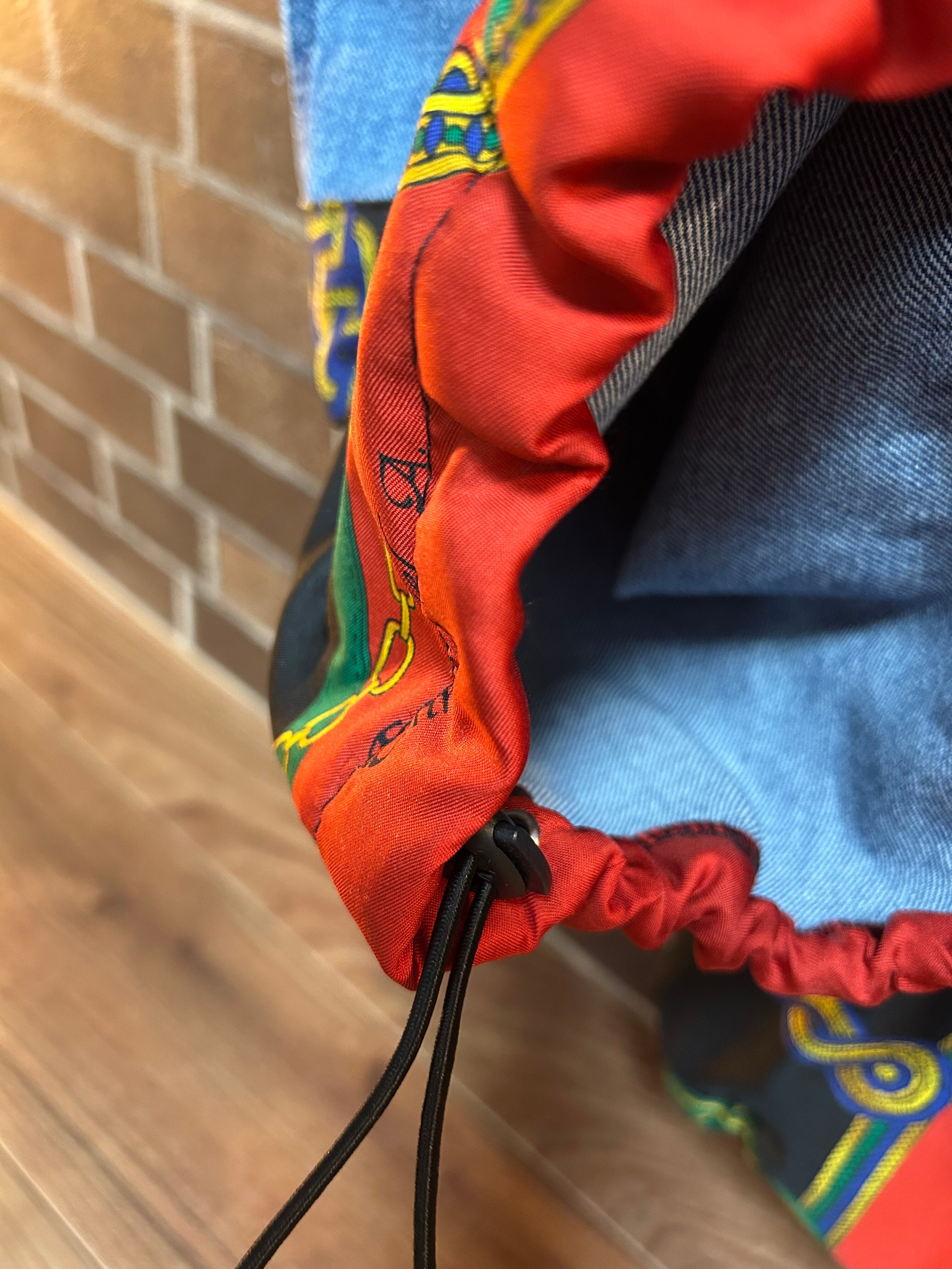 ビンテージスカーフを使用して制作したリメイクのドッキングオーバーオールです⭐︎