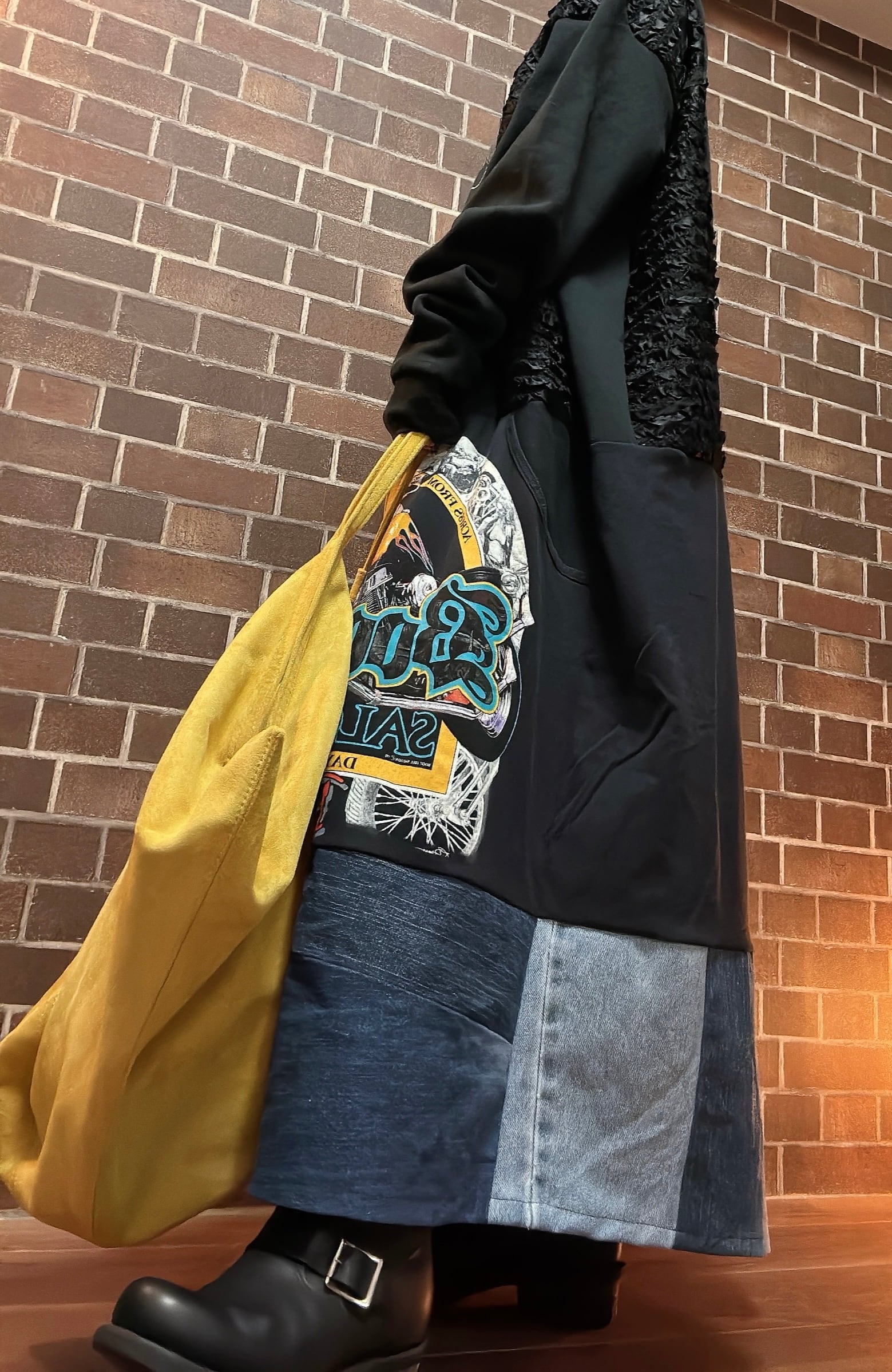 海外の古着スエットや、デニムを使用して制作したリメイクのワンピースです⭐︎