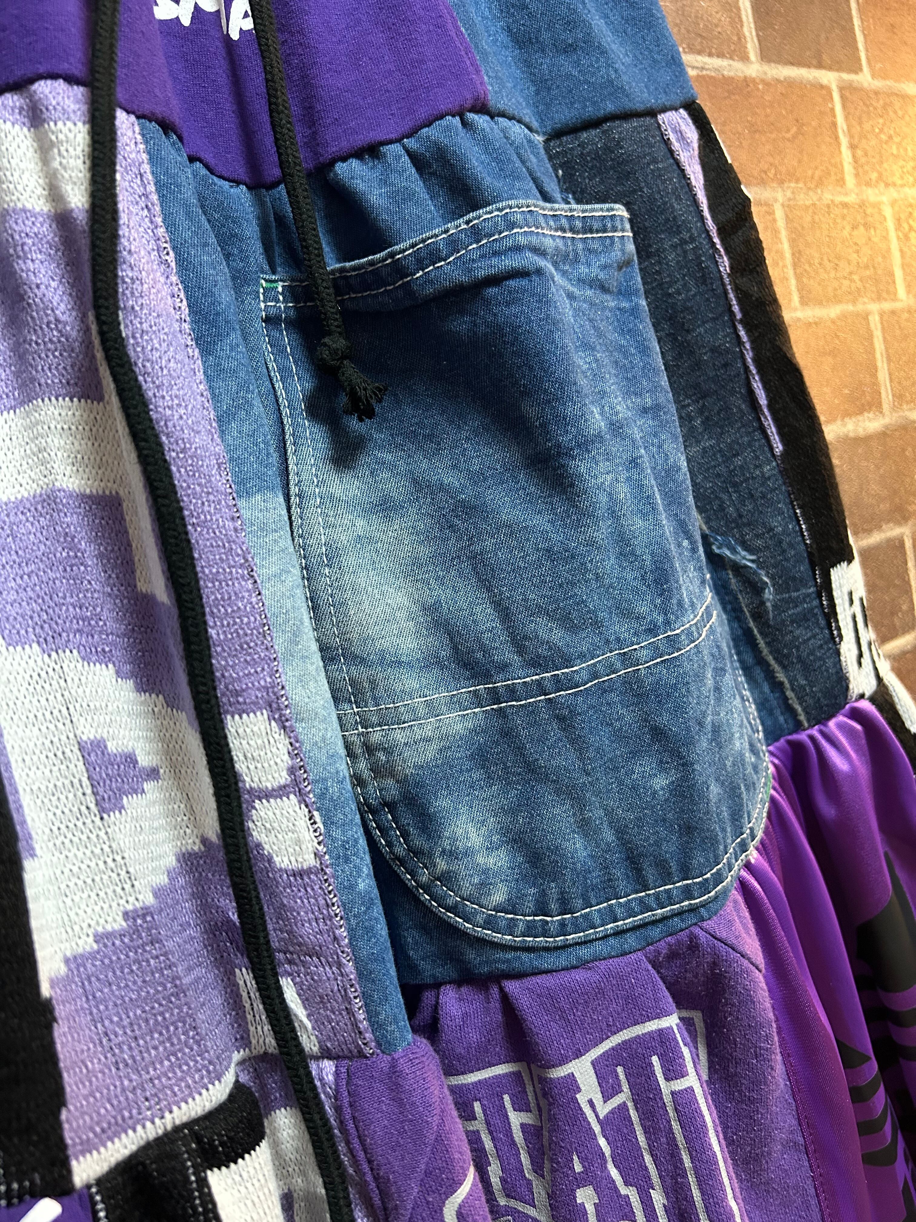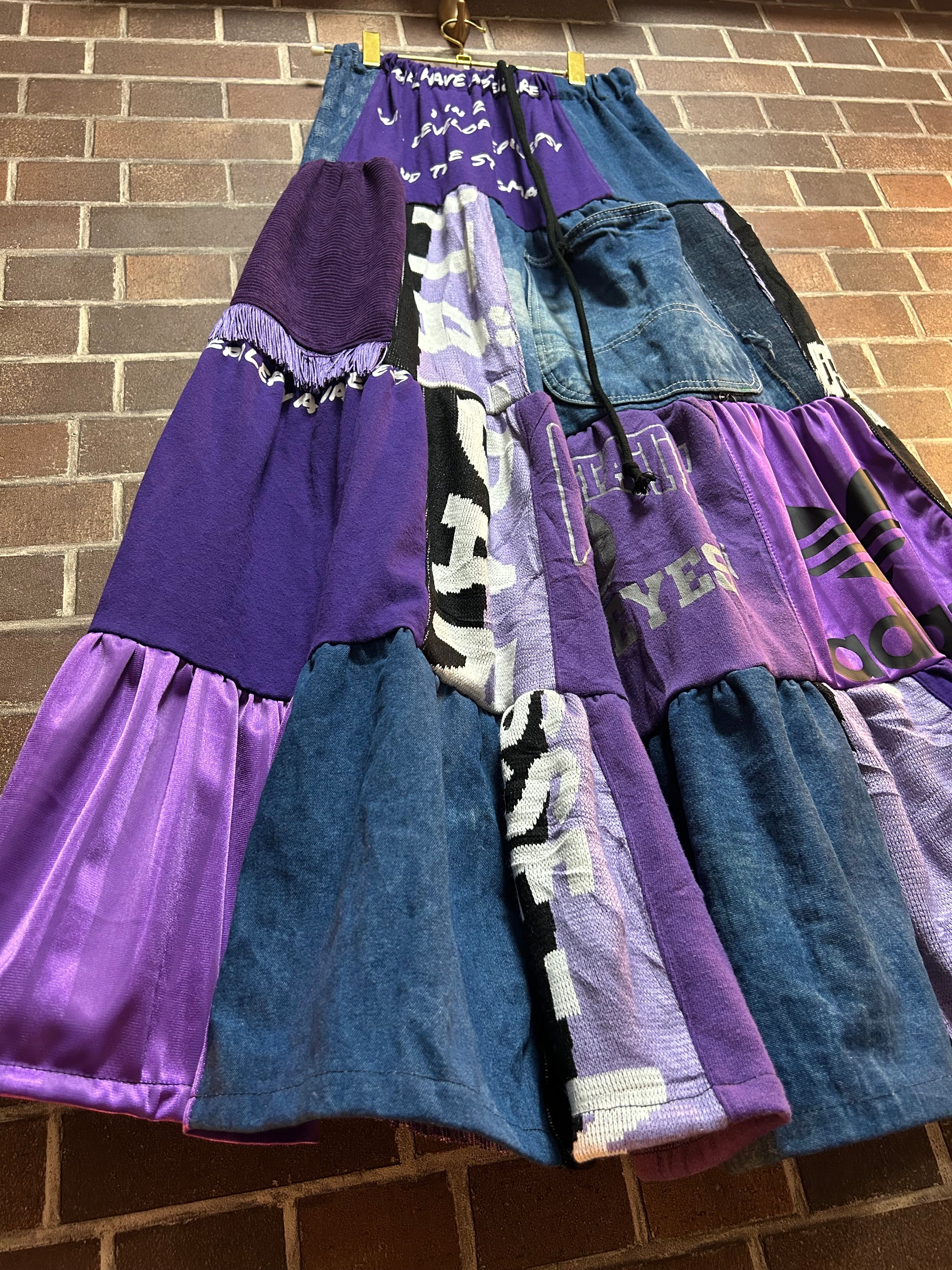異素材を組み合わせて制作したリメイクのパッチワークスカートです⭐︎