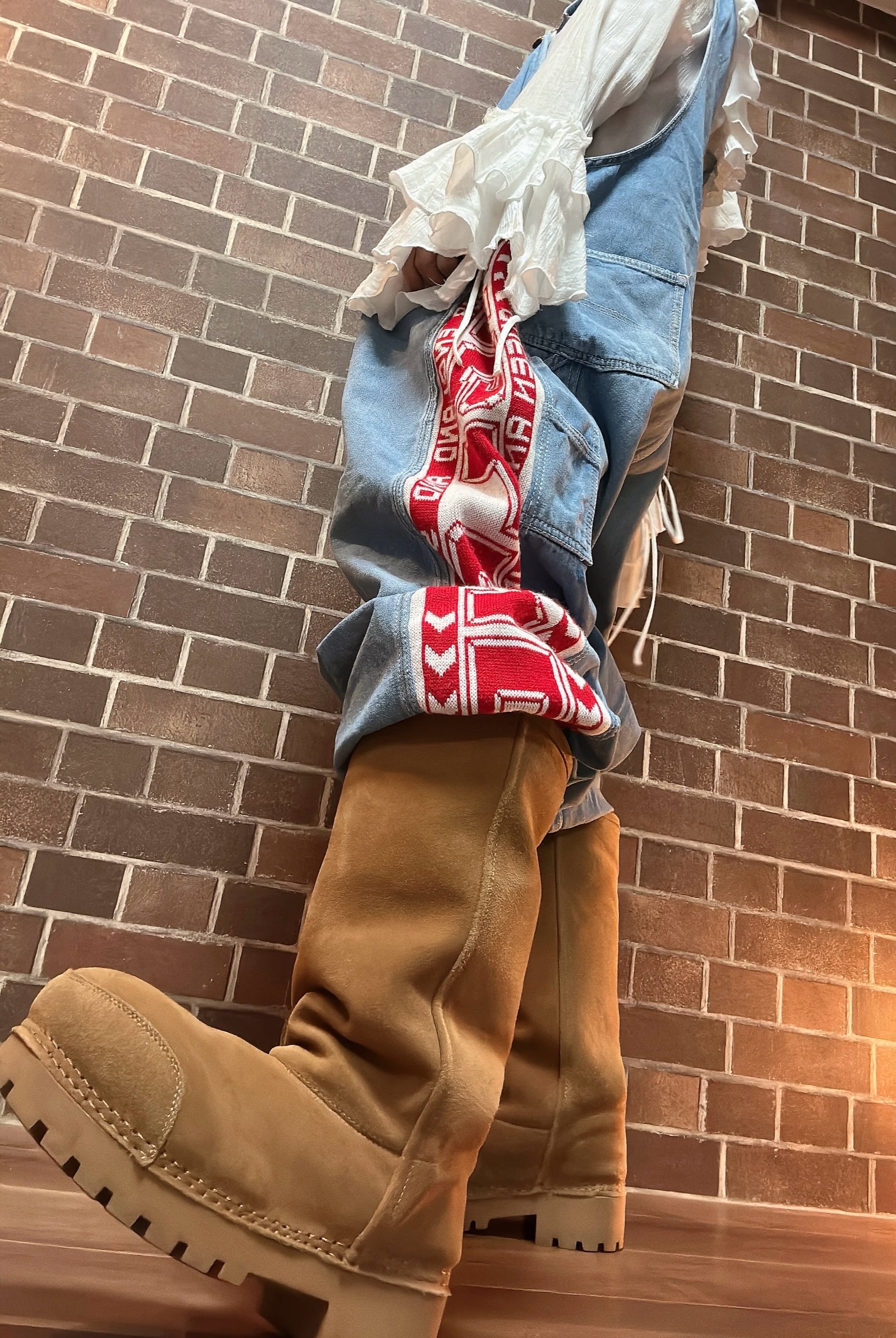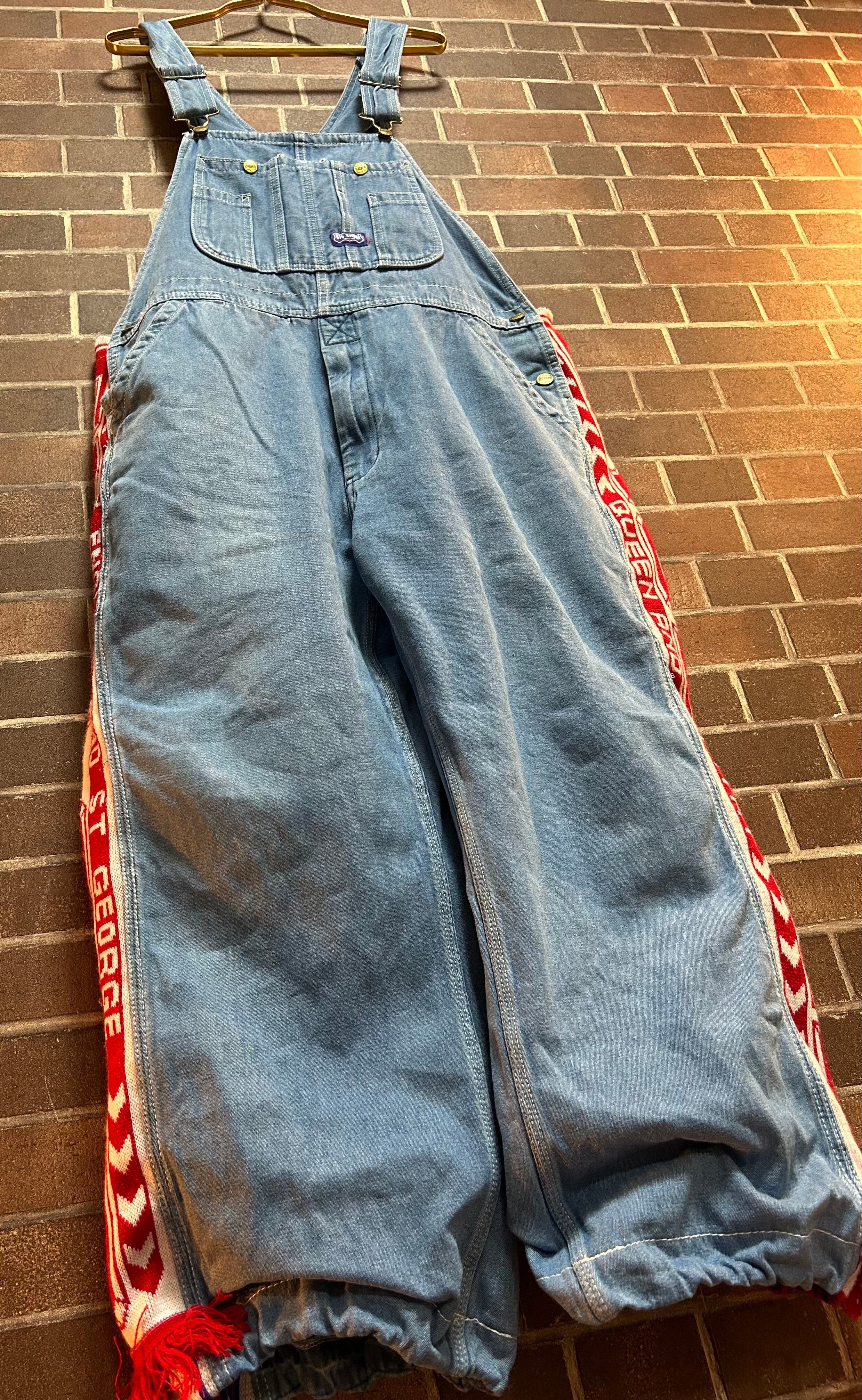 海外古着ニットと90sのデニムを使用して制作したリメイクのドッキングオーバーオールです⭐︎