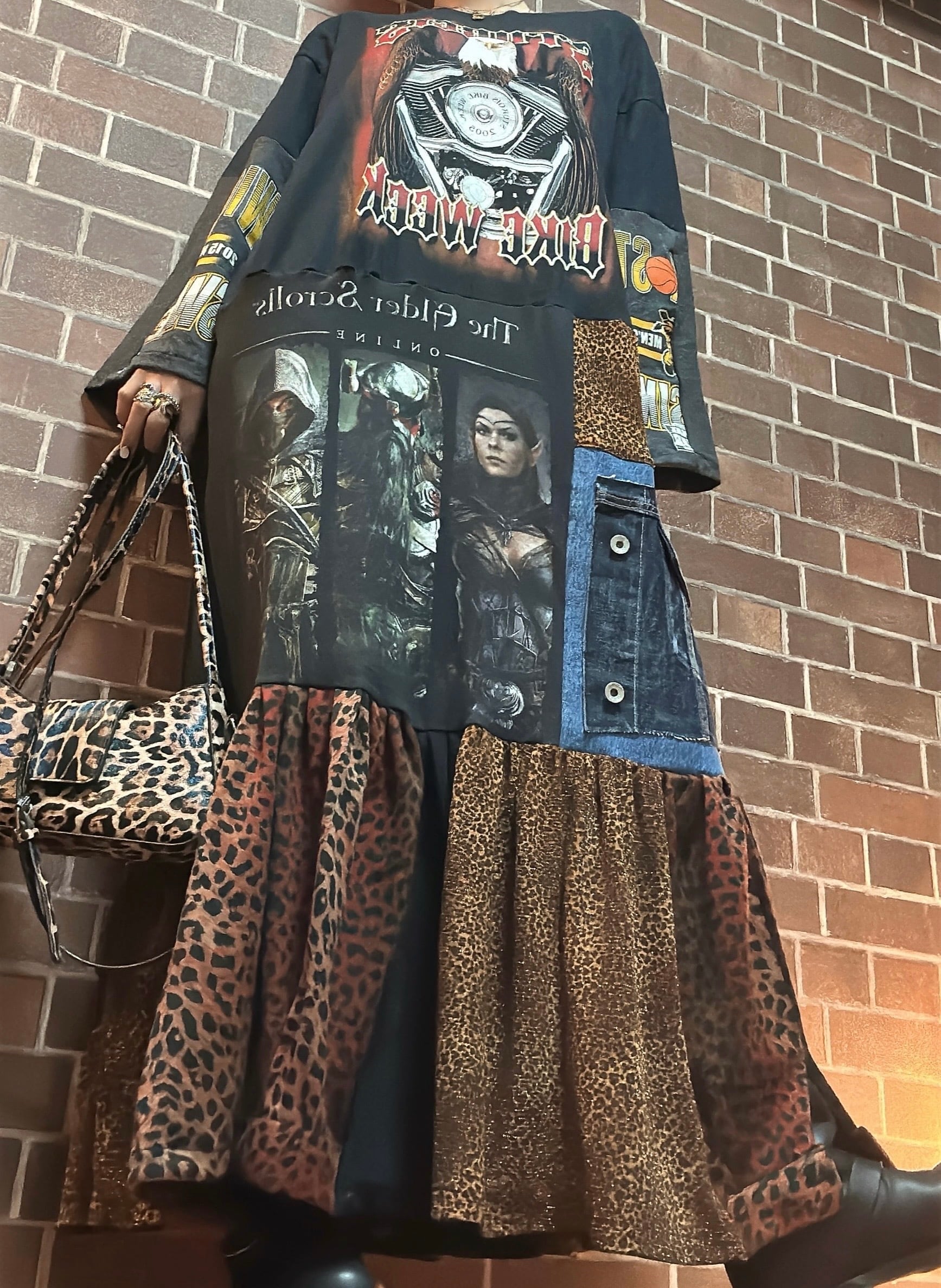 海外古着Tシャツや、ビンテージのレオパード生地を使用して制作したリメイクのワンピースです⭐︎