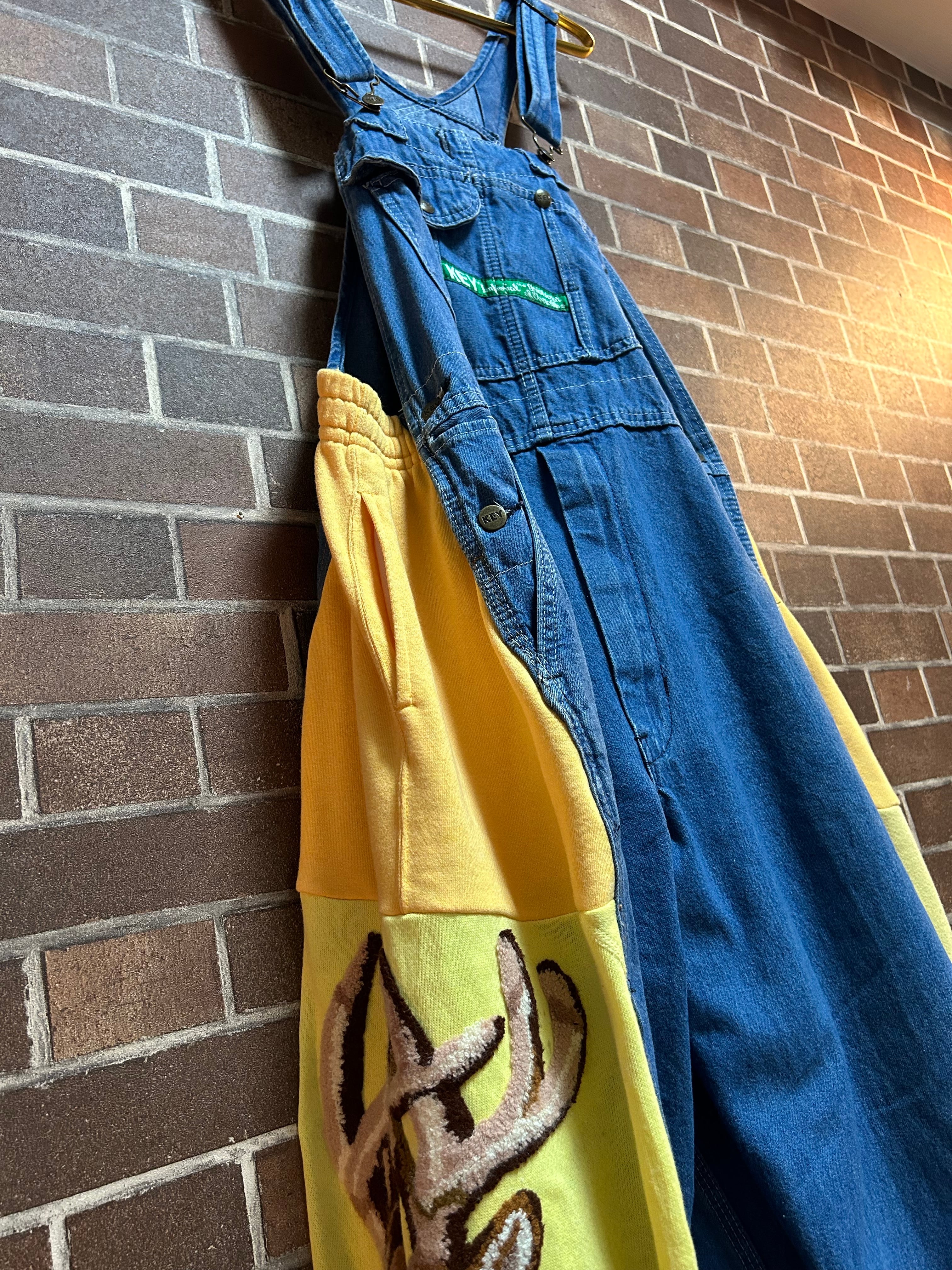 古着スエットを使用して制作したリメイクのドッキングオーバーオールです⭐︎