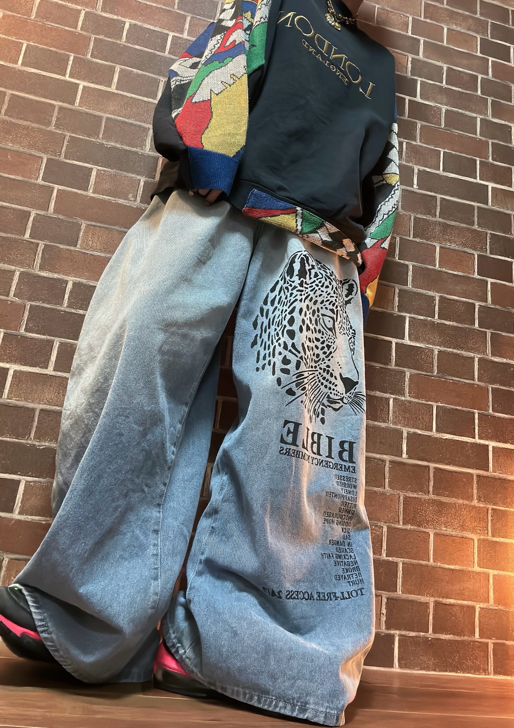 ハンドペイントを施したリメイクのワイドデニムパンツです⭐︎