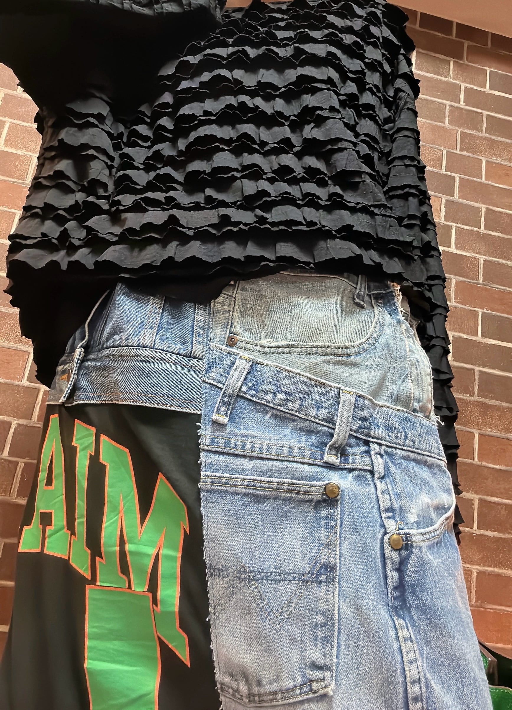 古着デニムやTシャツを使用して制作したリメイクのパッチワークペンシルスカートです⭐︎