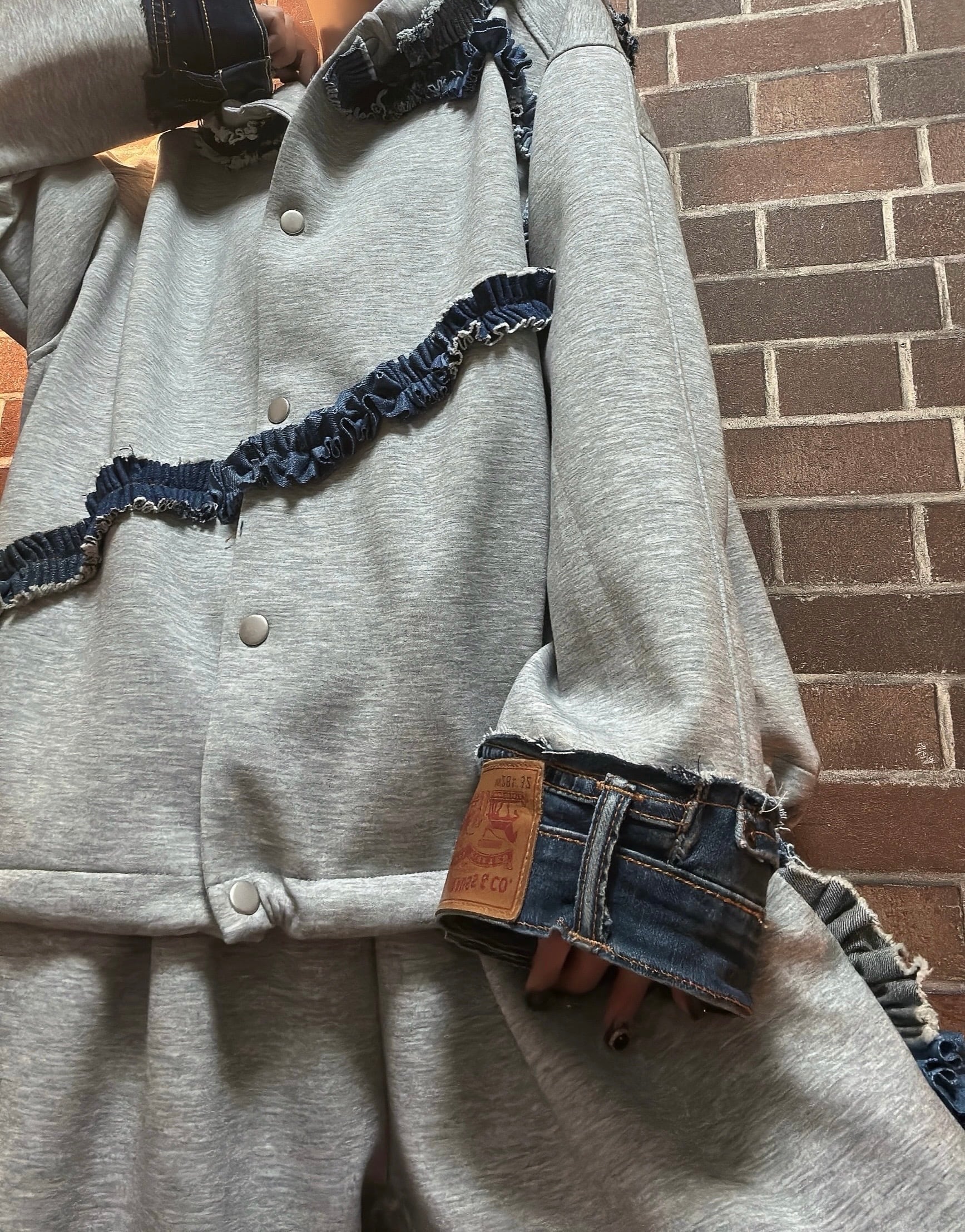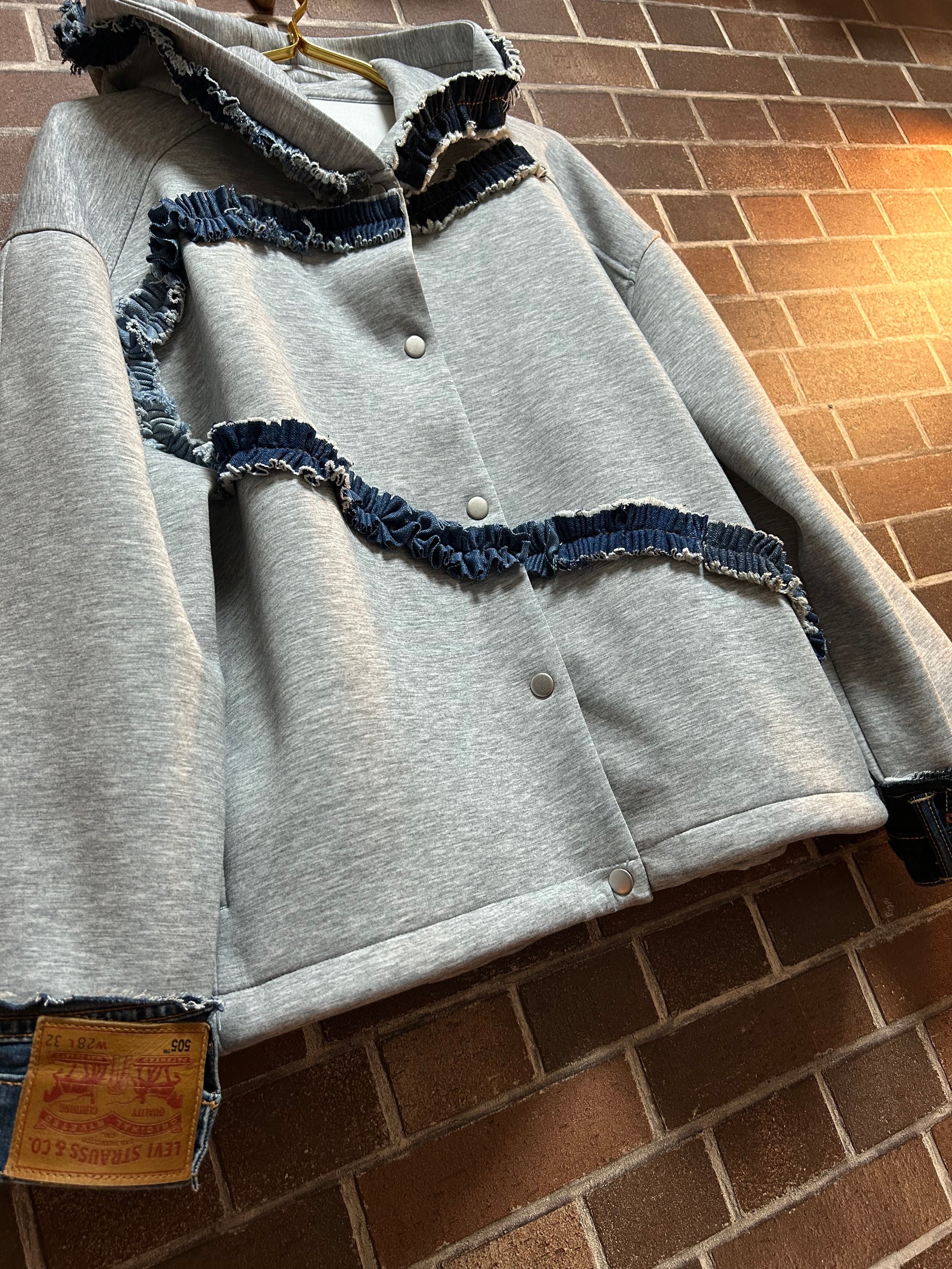 スエットにフリルデニムを施したリメイクのセットアップです⭐︎