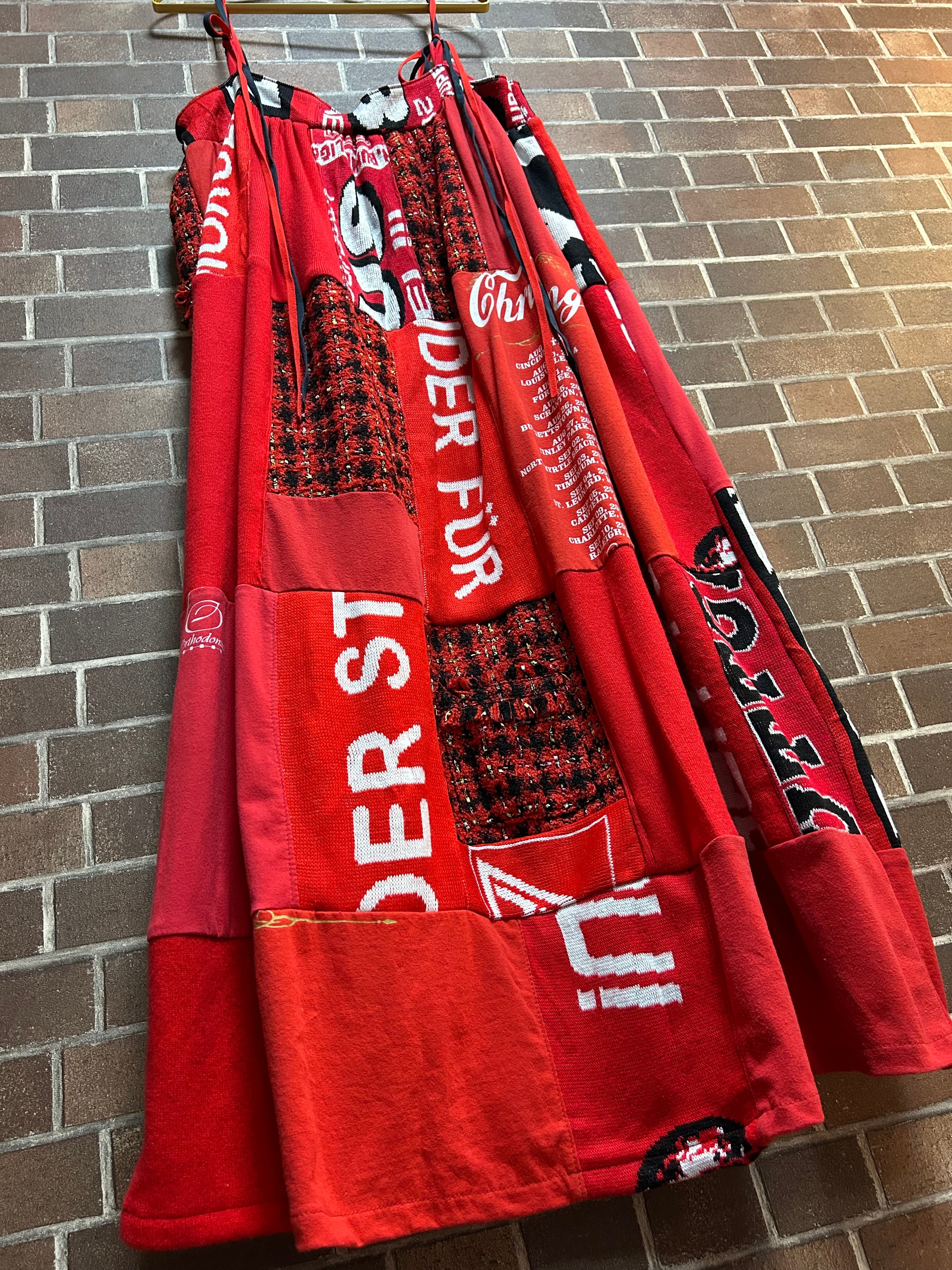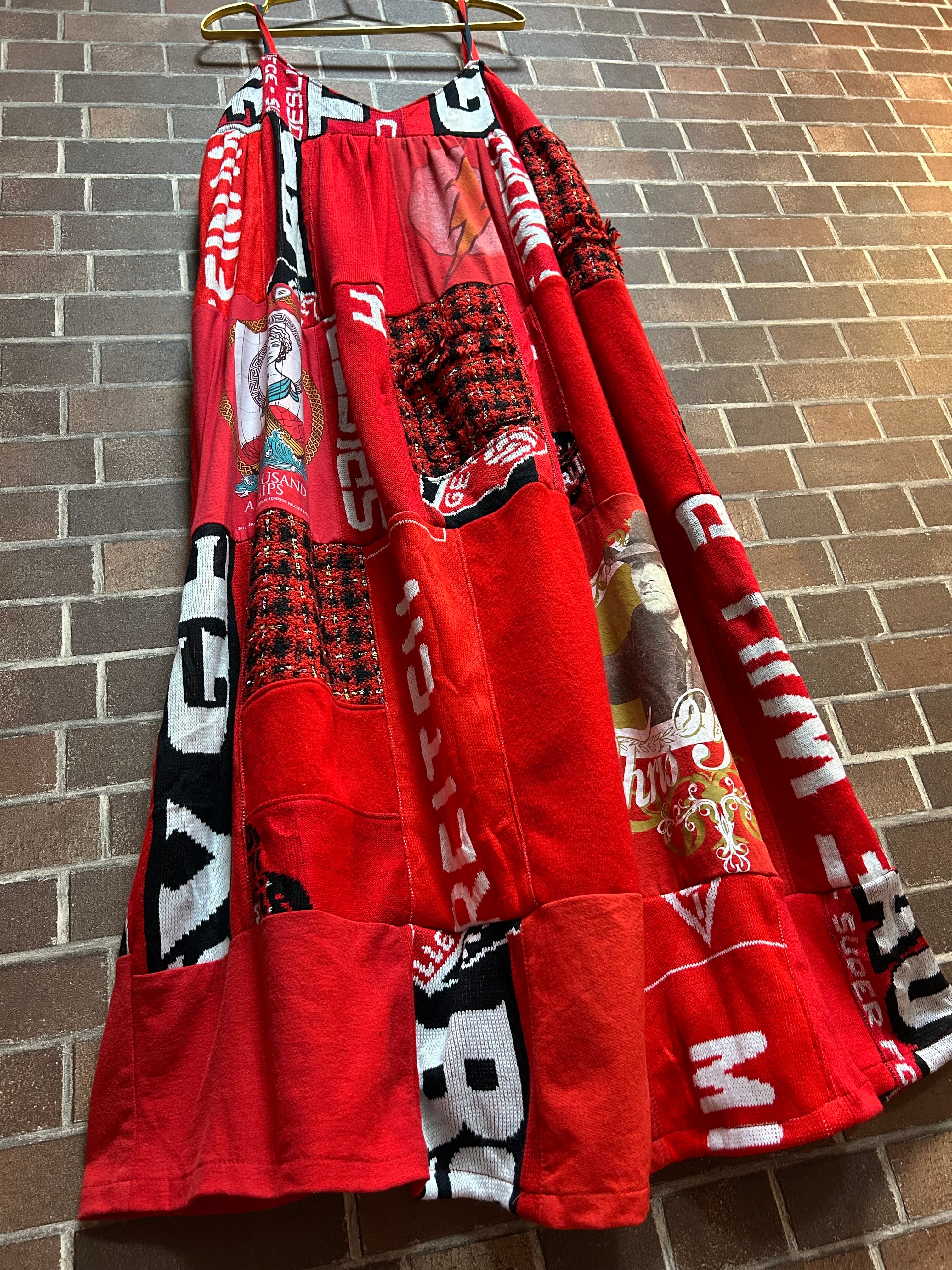 海外古着Tシャツやツィードジャケットなど様々な素材を使用して制作したリメイクのキャミソールワンピースです⭐︎