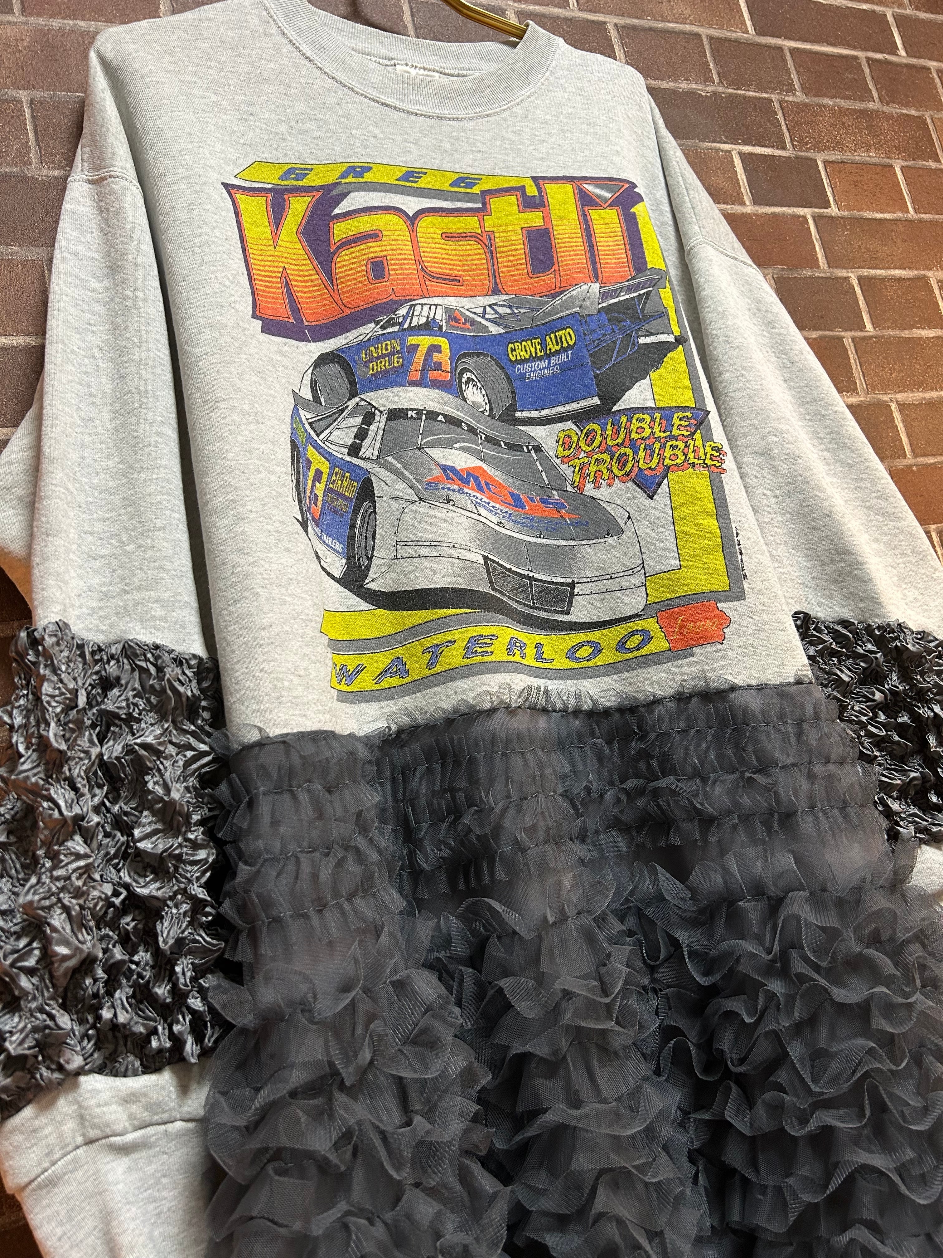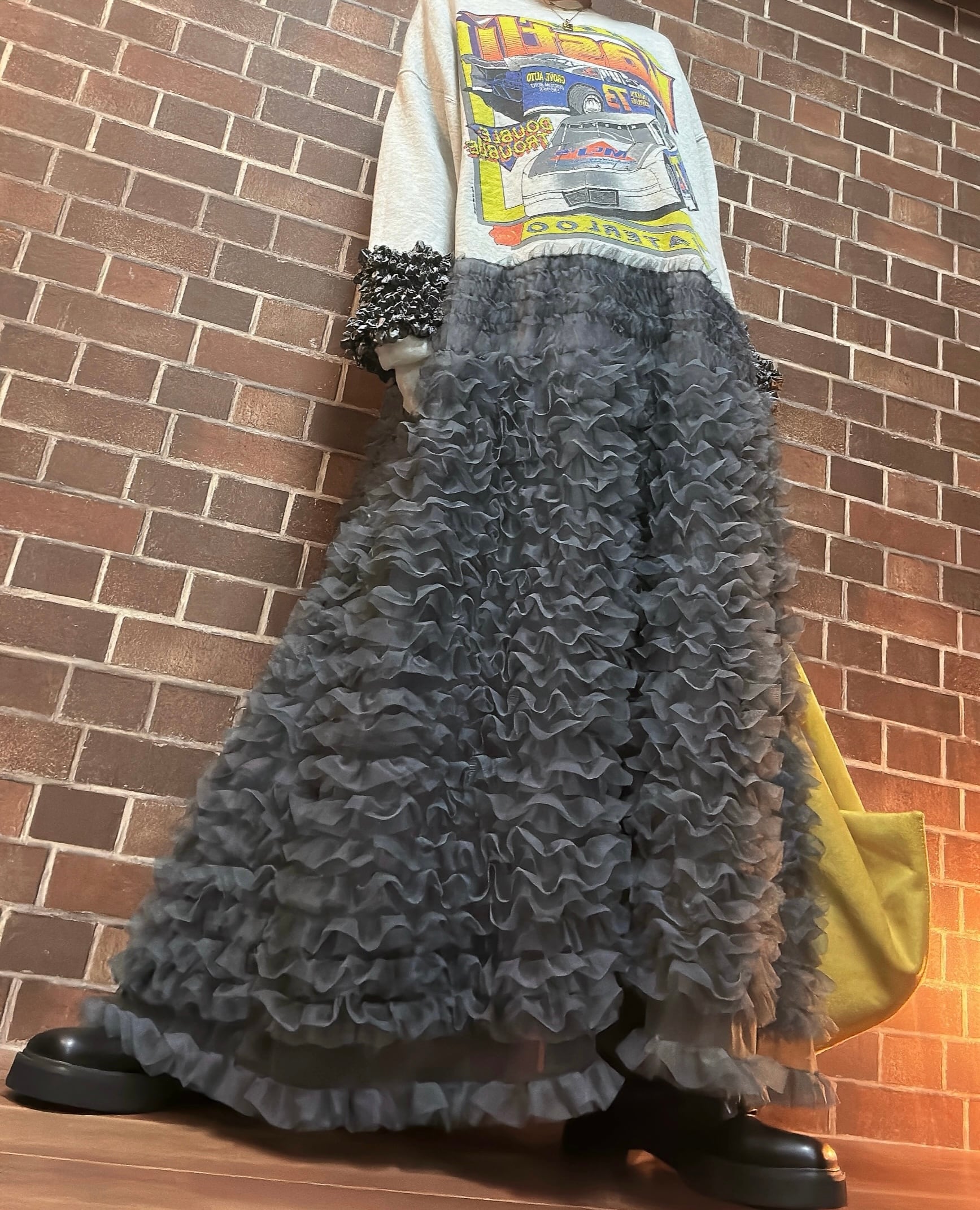USA製海外古着スエットを使用して制作したリメイクのドッキングチュールワンピースです⭐︎
