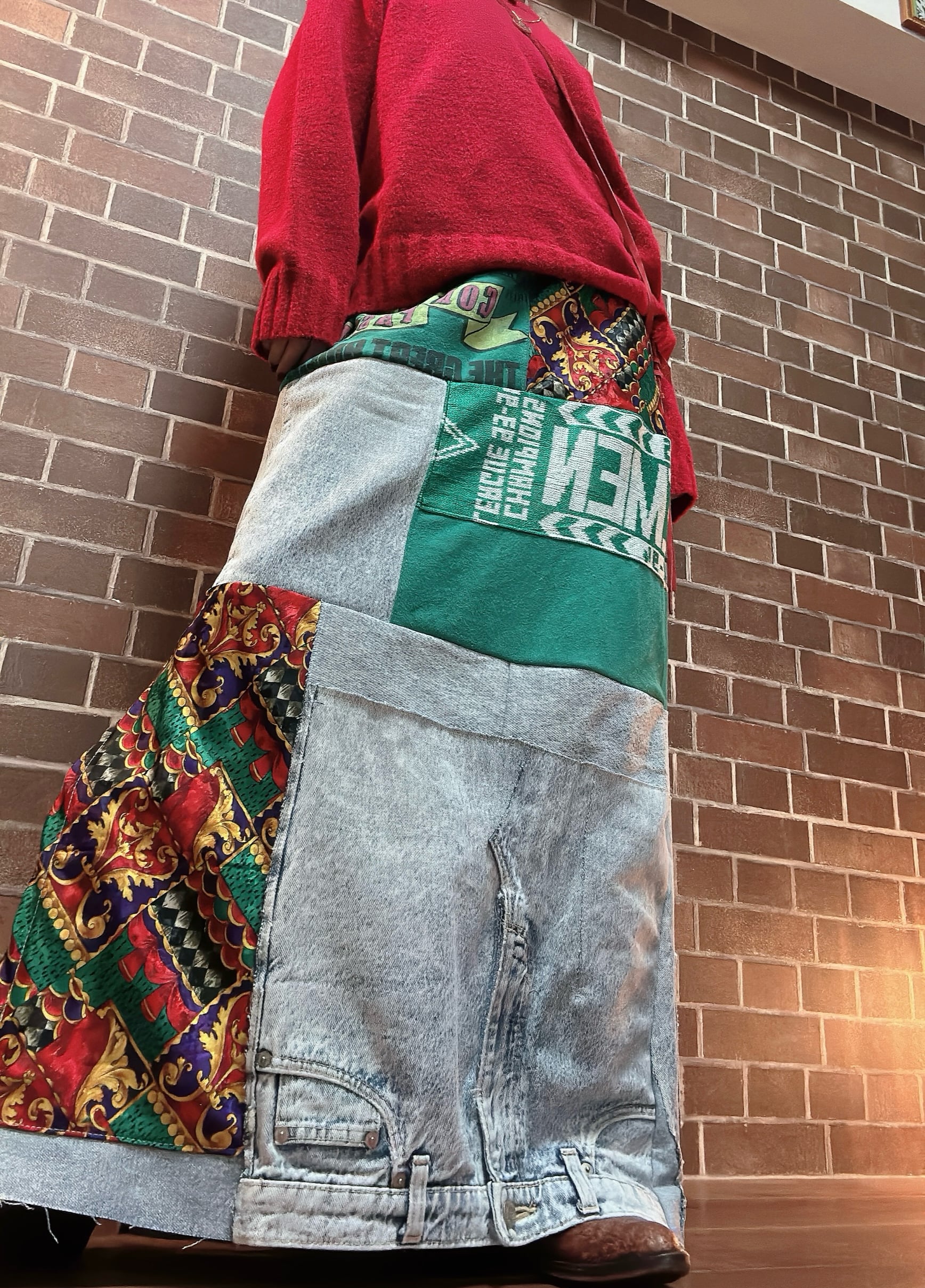 ビンテージジャケットを使用して制作したリメイクのデニムペンシルスカートです⭐︎
