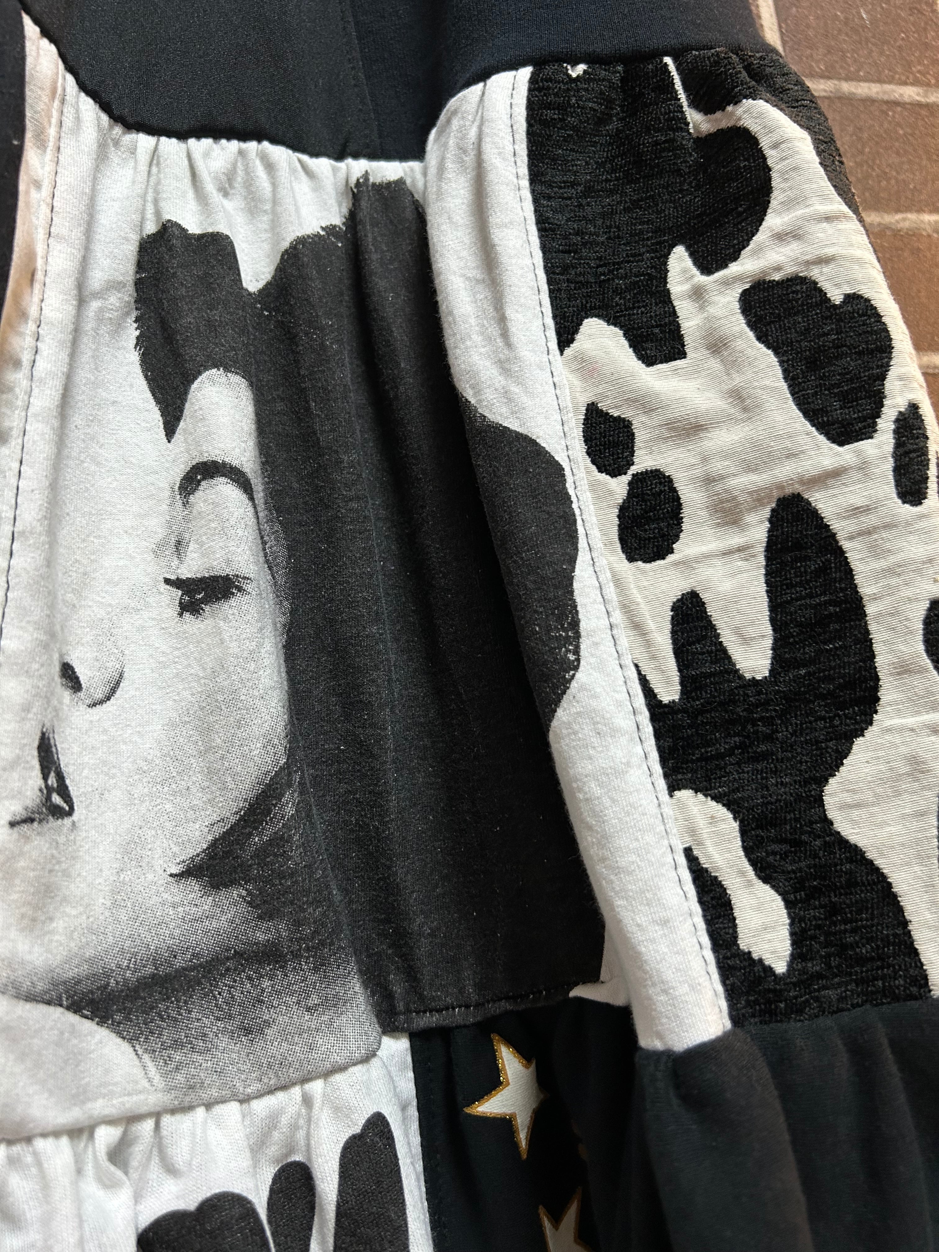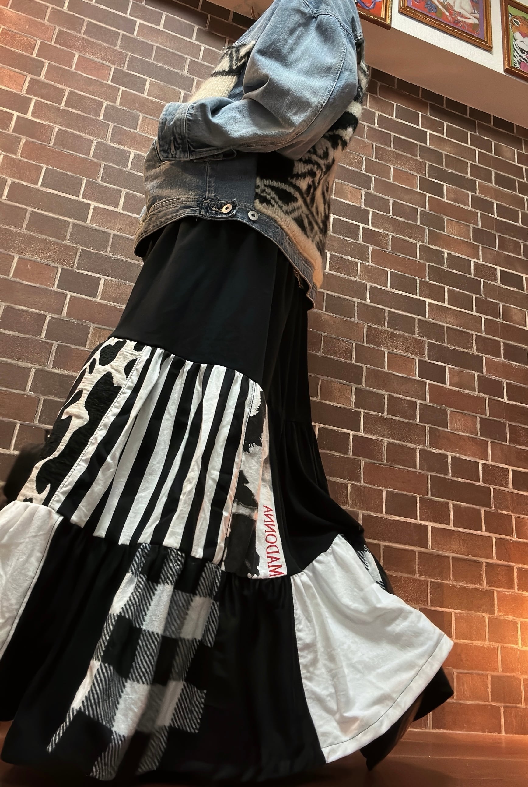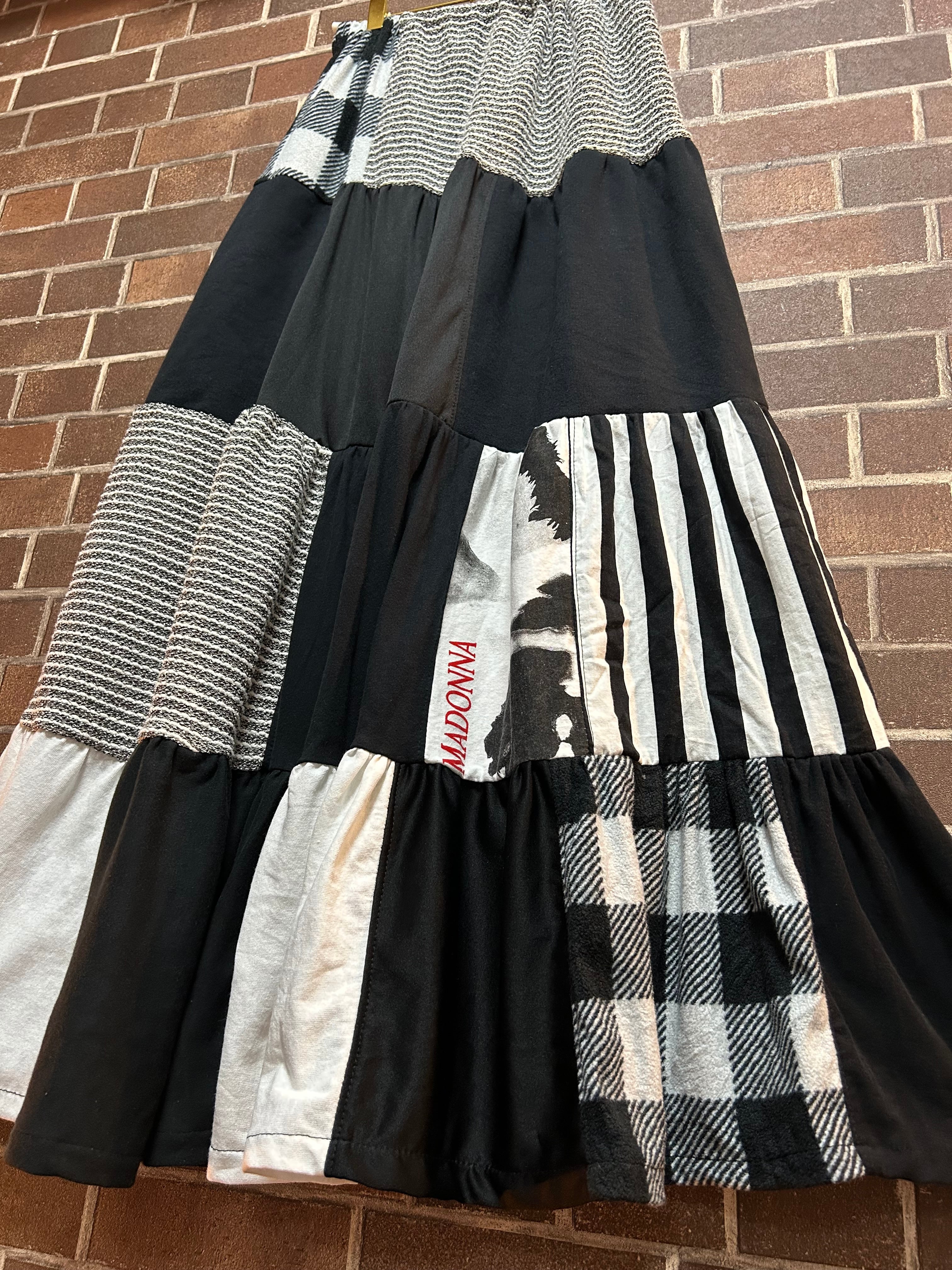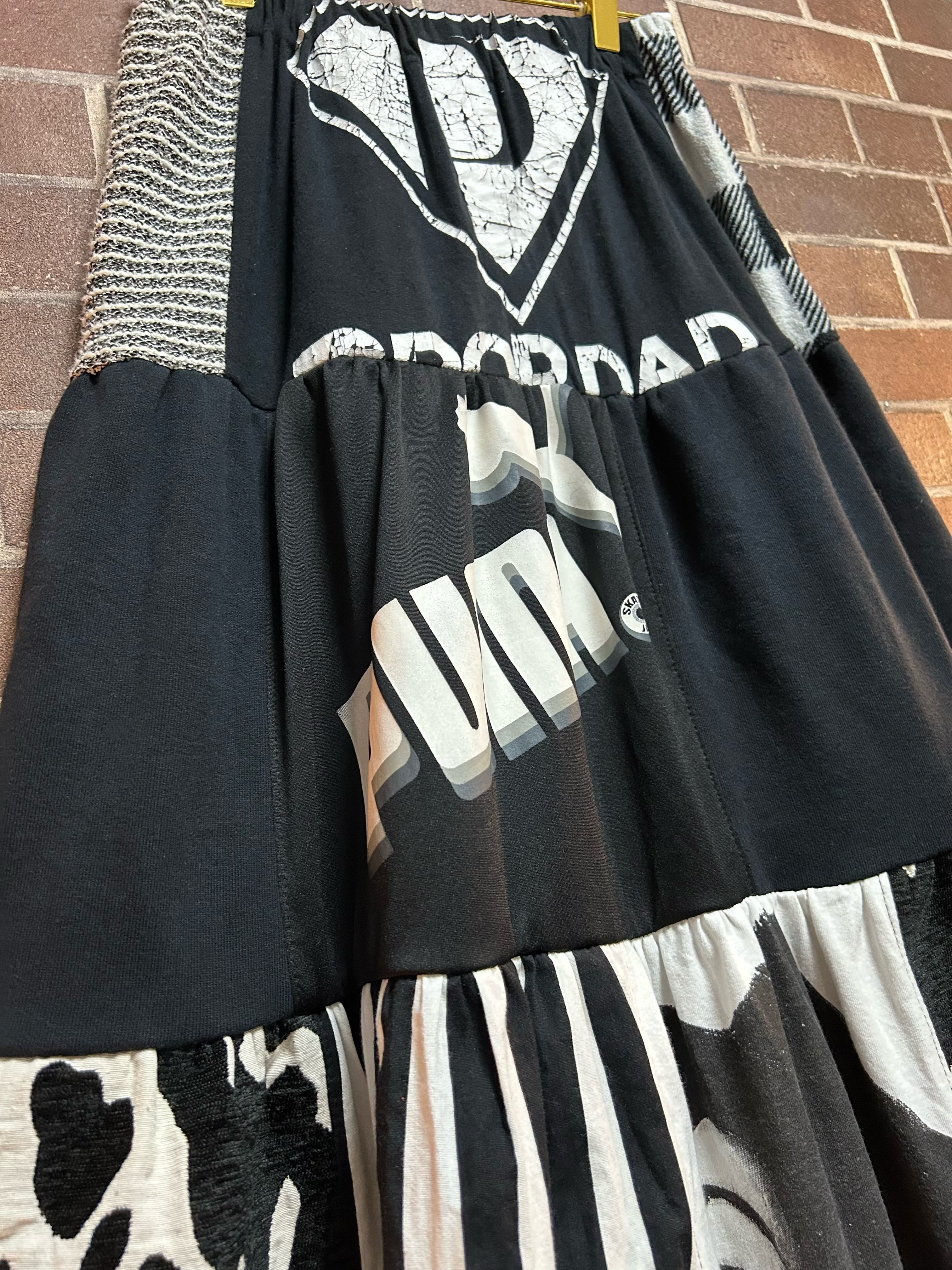 様々な素材の古着を使用して制作したリメイクのティアードスカートです⭐︎