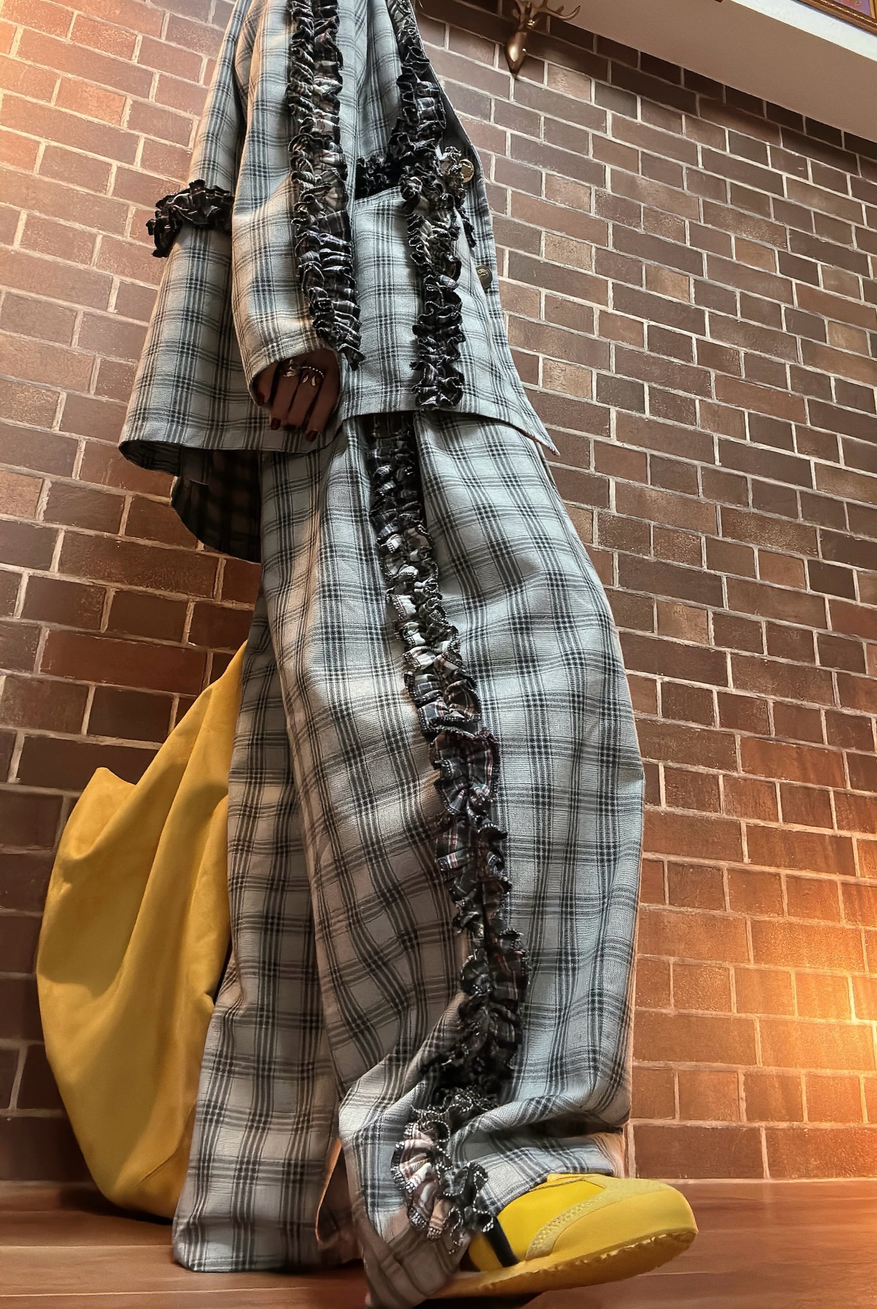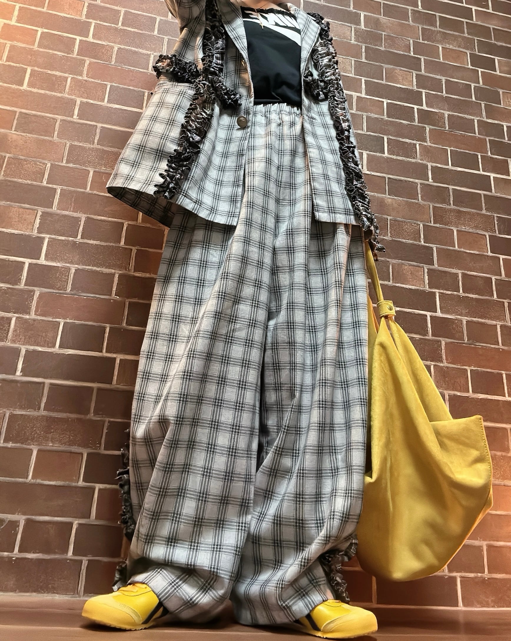 リメイク チェック柄フリルセットアップ